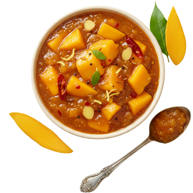A delightful balance of sweet and tangy flavors, our Mango Chutney is crafted from ripe mangoes gently simmered with traditional spices. Smooth fragrant and bursting with tropical warmth this chutney adds a bright refreshing touch that perfectly complements snacks appetizers and classic Indian dishes.