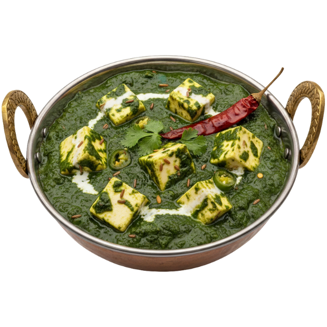 A timeless vegetarian masterpiece that is both indulgent and nourishing. Our Palak Paneer features vibrant, freshly chopped spinach slow-simmered into a smooth, velvety sauce. We fold in generous cubes of delicate, homemade cheese curd (Paneer), which soak up the earthy flavors of the greens. Seasoned with a refined selection of aromatic herbs and mild spices, this dish offers a silky texture and a clean, soul-warming taste. It is a wholesome, protein-rich classic that remains a favorite across the globe.